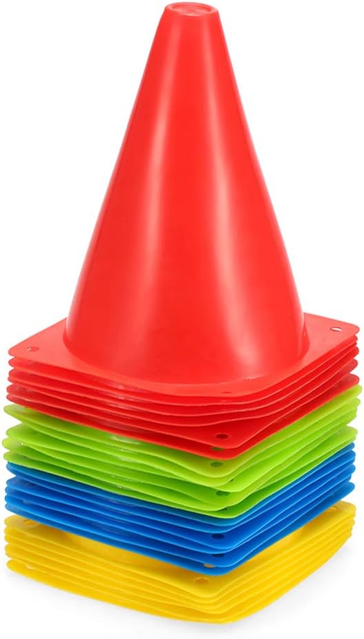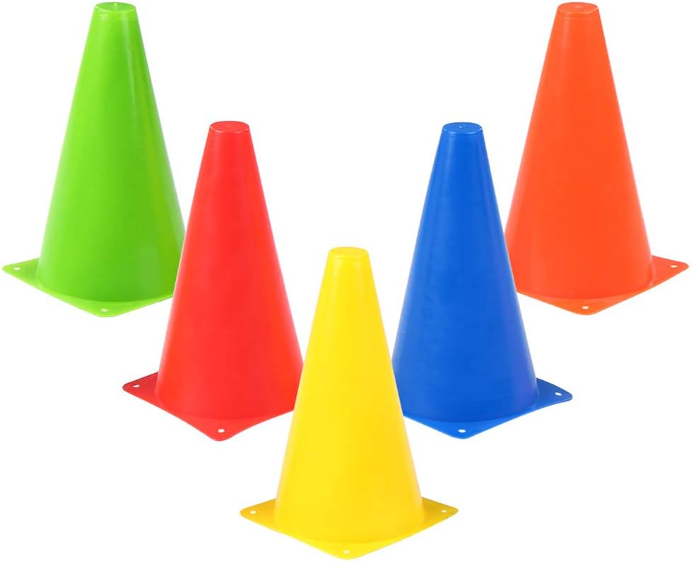 مخاريط المرور البلاستيكية 20 سم مخروط تحديد ميداني لتمارين الرشاقة الرياضية - بلاستيك PVC ناعم وسريع الارتداد - لنشاط تدريبات كرة القدم او الاحداث، ألوان متعددة