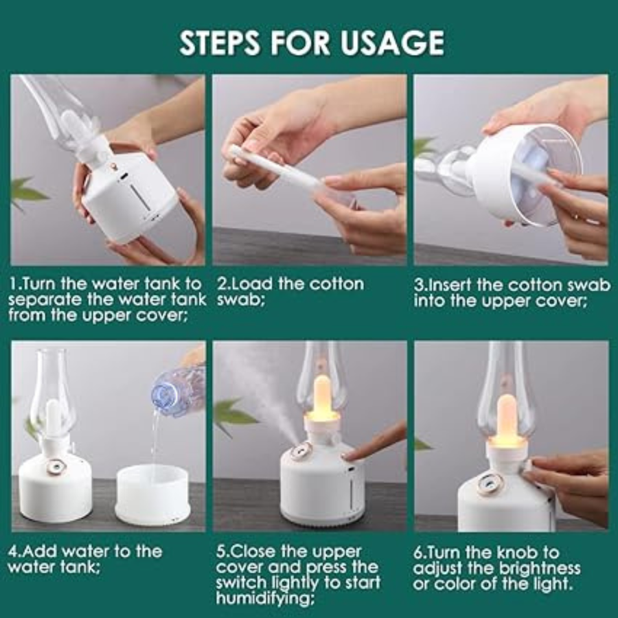 Classical Wireless Aroma Diffuser Humidifier Night Light Lamp, Battery 1200mAh (White)