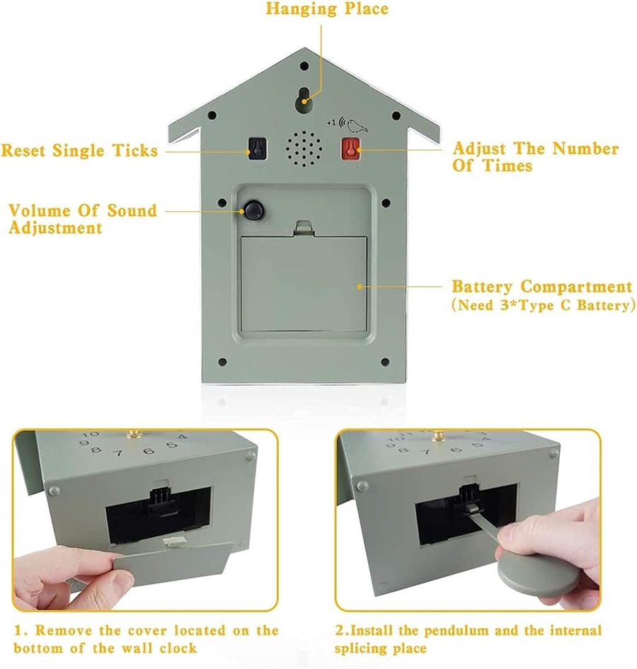 ساعة Cuckoo Clock، أصوات الطيور الطبيعية Cuckoo Call ساعة الحائط مع الساعة بندول