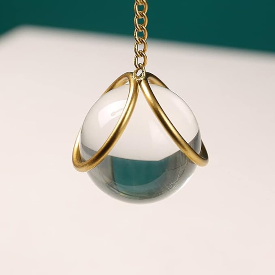 You need to put the glass ball into the metal clip, the operation is very simple, the ball will be firmly stuck in the two metal rings suspended by the metal chain, will not fall off, gently toggle the glass ball can swing freely.
