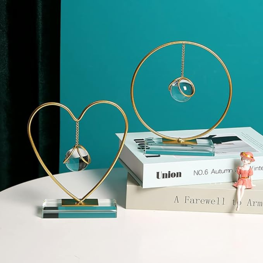 DIYOMR Clear Crystal Ball Abstract Art Decoration Gold Iron Modern Decorative Ornaments for Home Living Room Bedroom Office Decor (Love)