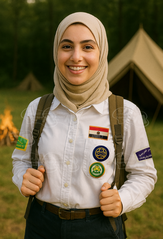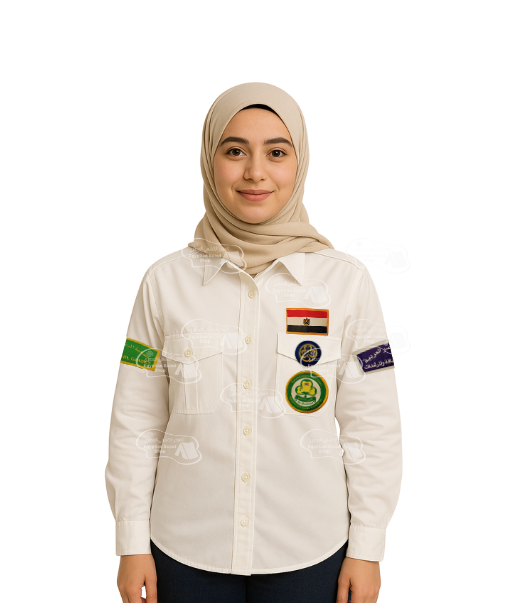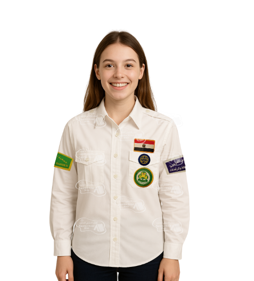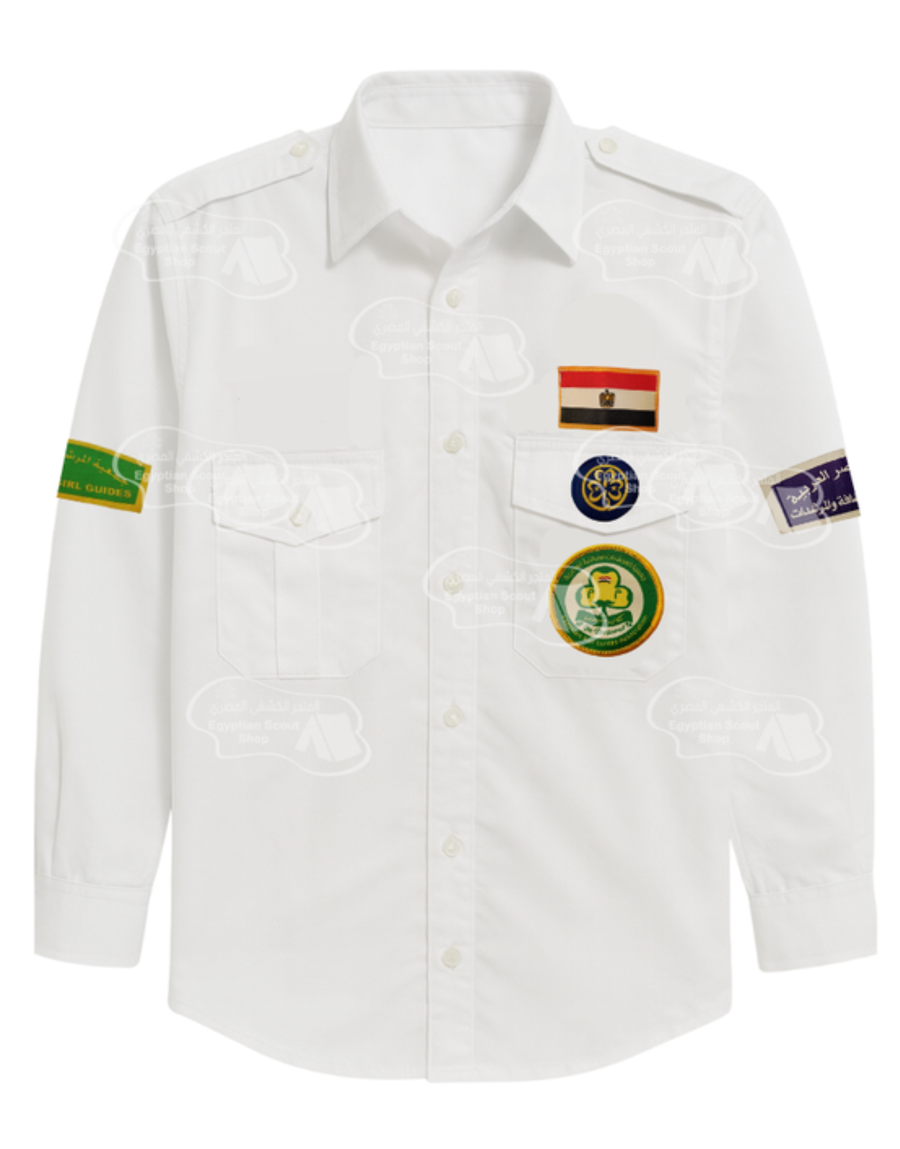 قميص المرشدات المصريه خامة قطن - لون ابيض وعالي الجودة مع شارات الكشافه بتصميم عملي ومريح يناسب النشاطات والفعاليات الكشفية مع خياطة متينة