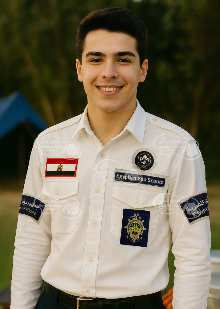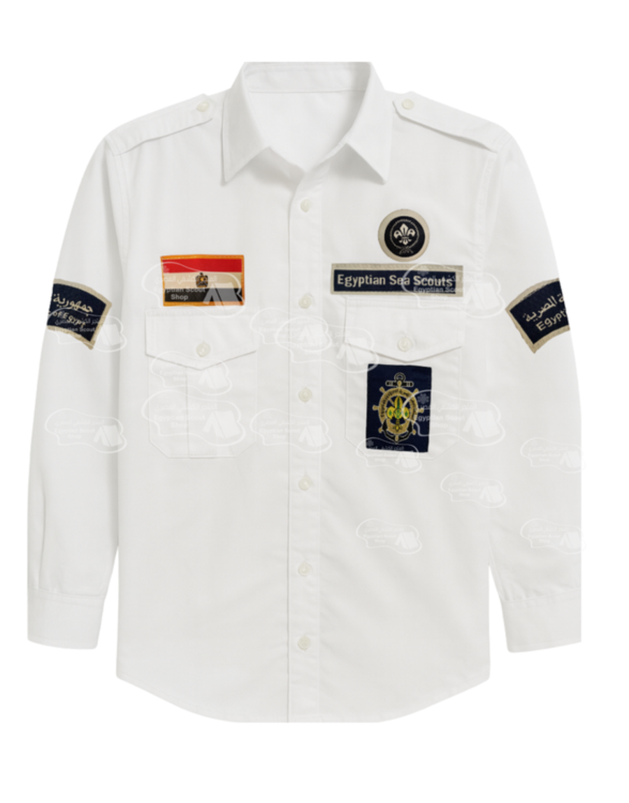 قميص كشافة بحريّة مصري مصنوع من قماش البولستر عملي يمنح راحة في الاستخدام خلال الأنشطة والمعسكرات. يتضمن شارات بحريه واضحة مثل شارة Egyptian Sea Scouts وشارة العلم المصري وشارات الأكمام. تصميم كلاسيكي بأزرار أمامية وجيبين بغطاء لضمان مظهر منظم يناسب زي الكشافة. مناسب للاستخدام التدريبي والفعاليات الرسمية والمهام البحرية.