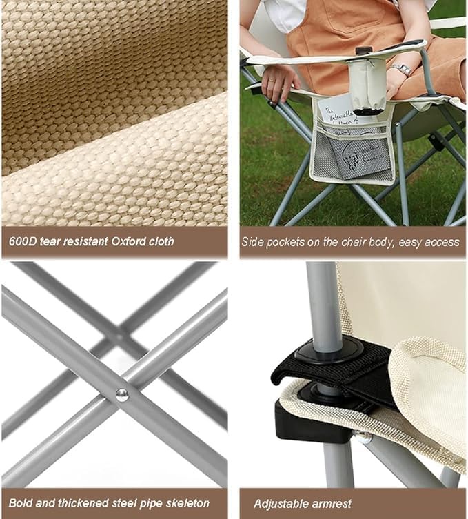 【مسند ظهر قابل للتعديل】: يوفر تعديل مسند الظهر 4 أوضاع دعمًا جيدًا للظهر وتجربة تخييم مريحة.