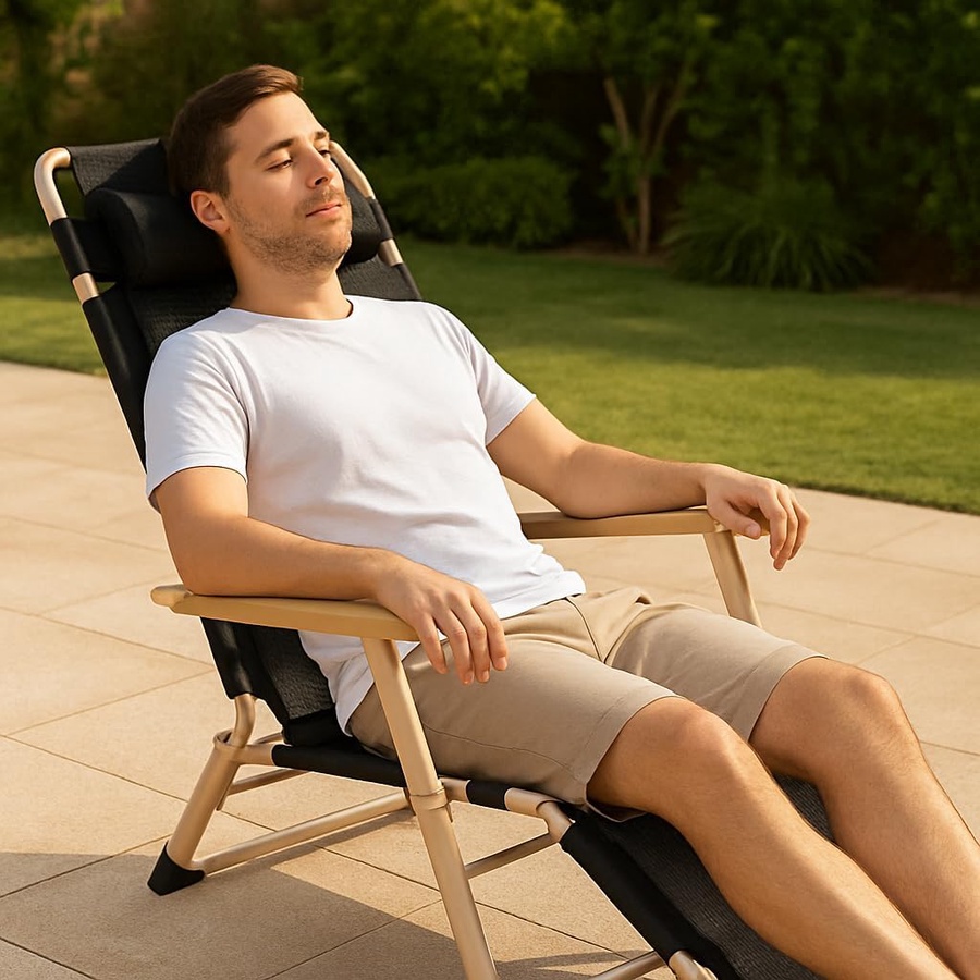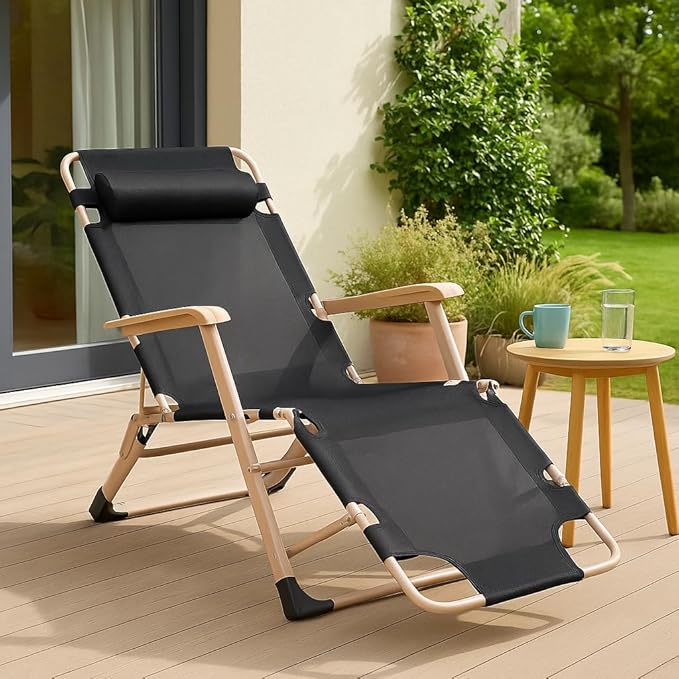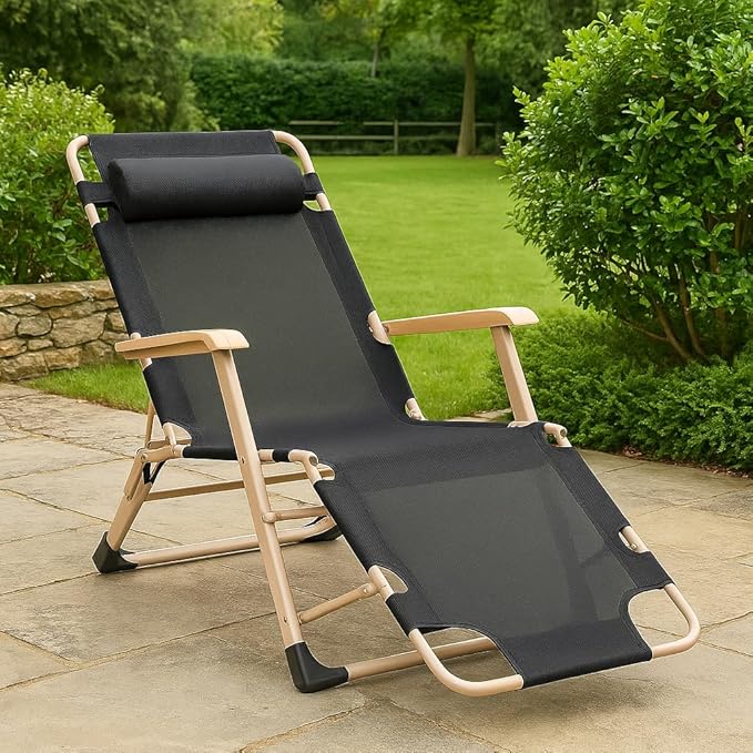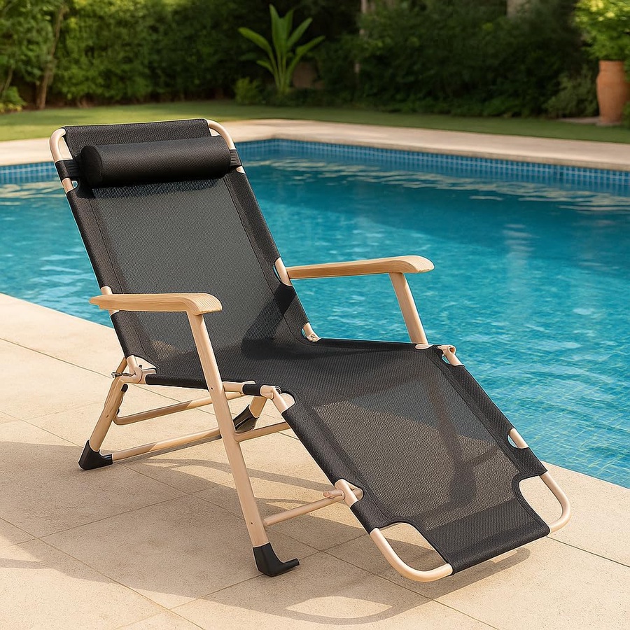 Foldable Recliner Chair with Footrest and Headrest – Multi-Position Beach and Garden Chair – Lightweight and Portable