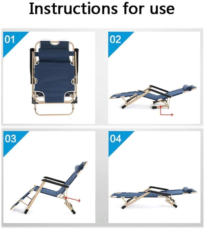 كرسي استرخاء قابل للطي مع مسند قدم ومسند رأس – كرسي شاطئ وحديقة متعدد الوضعيات – خفيف الوزن وسهل الحمل