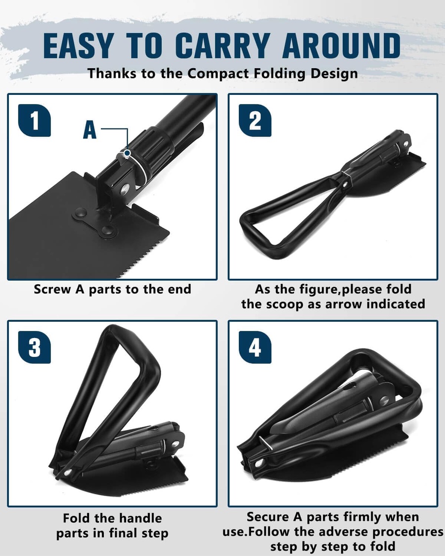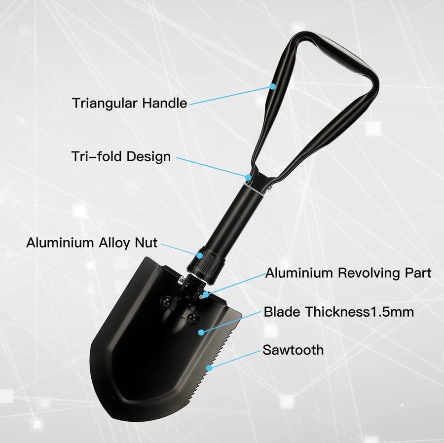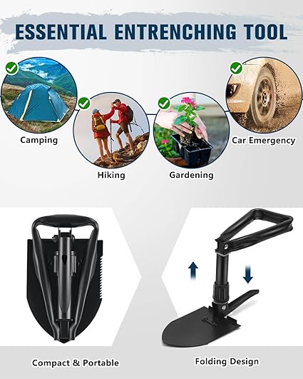 Wide Range of Uses: Designed for camping, whether you're backpacking for a wilderness adventure or preparing for emergencies, this emergency shovel is an essential tool for the great outdoors. It's convenient as a camping shovel, beach shovel, or off-road accessory when you need to dig your vehicle out of mud.