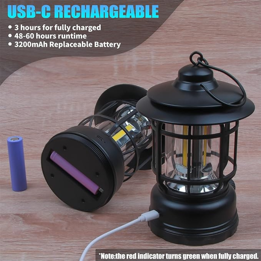 فانوس خيمه- قابل للشحن- (اسود)