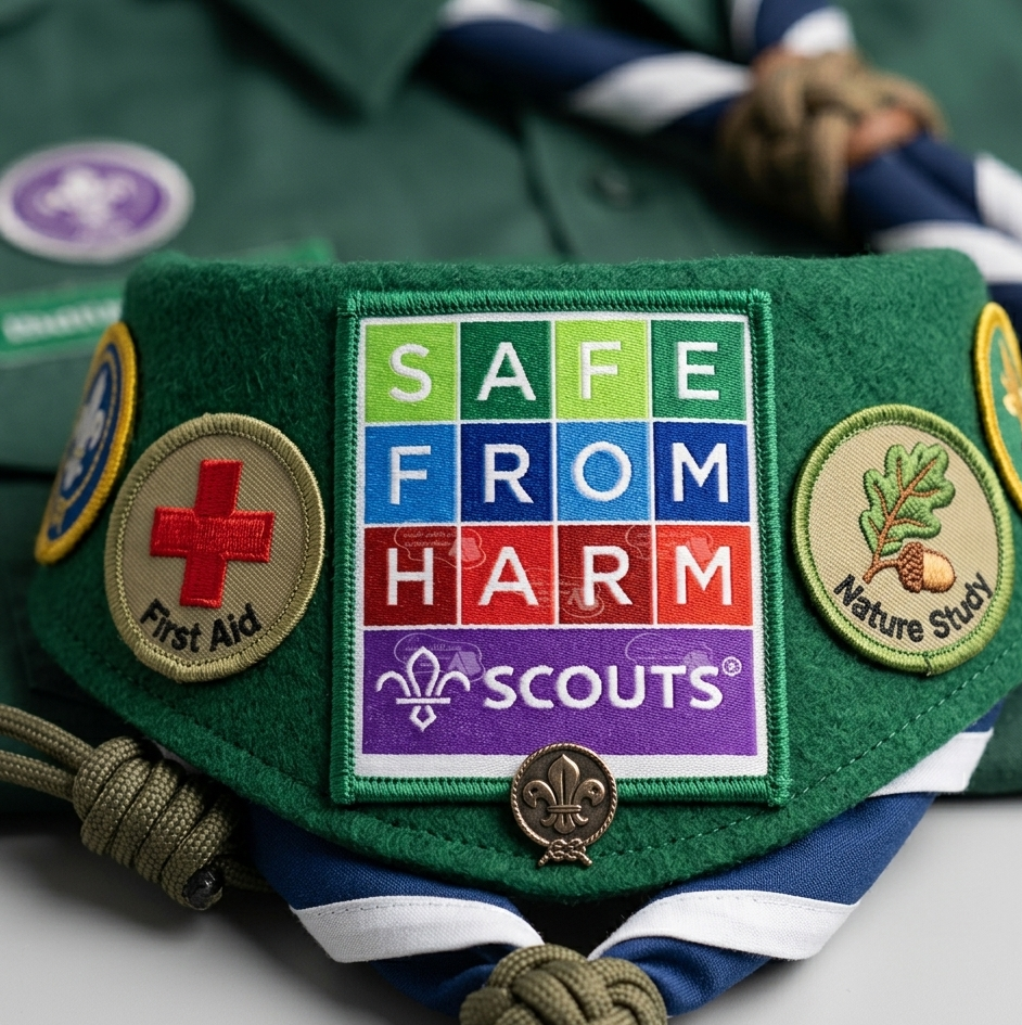 بادج Safe from Harm UK الأصلي للكشافة. شارة مطرزة ترمز للالتزام بمعايير الحماية من الأذى. جودة عالية للزي الكشفي الرسمي وتدريبات القادة