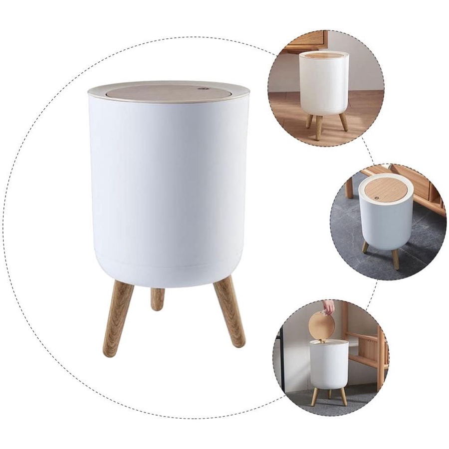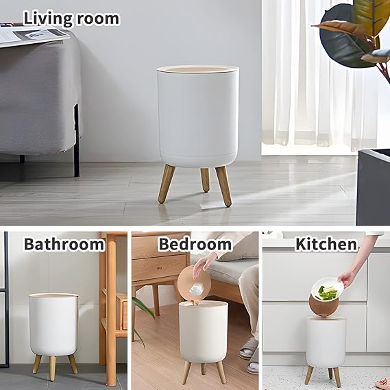 سلة مهملات بغطاء سعة 7 لتر من البلاستيك مع زر ضغط، سلة مهملات نورديك، سلة نفايات بيضاء مناسبة لغرفة النوم والحمام وغرفة المعيشة والمكتب، سلة مهملات مقاومة للكلاب، من بروكاد، بالضغط على الأعلى