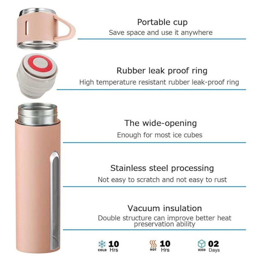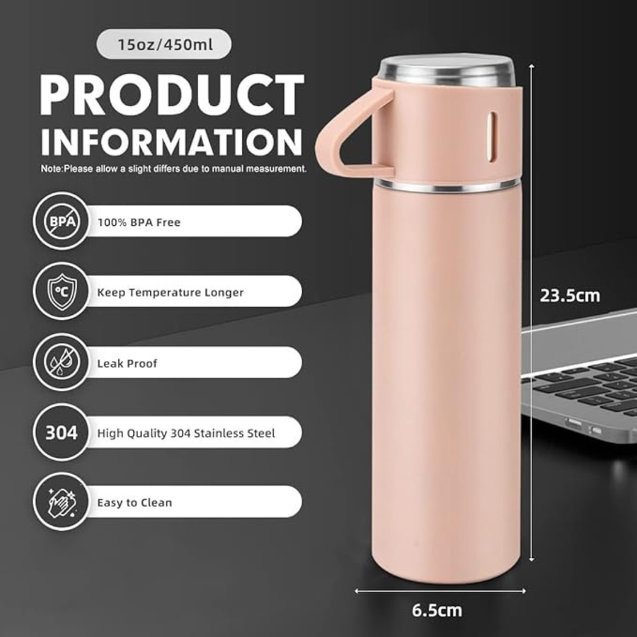 ترمس ب 3 اكواب- 500مللي- (بينك)