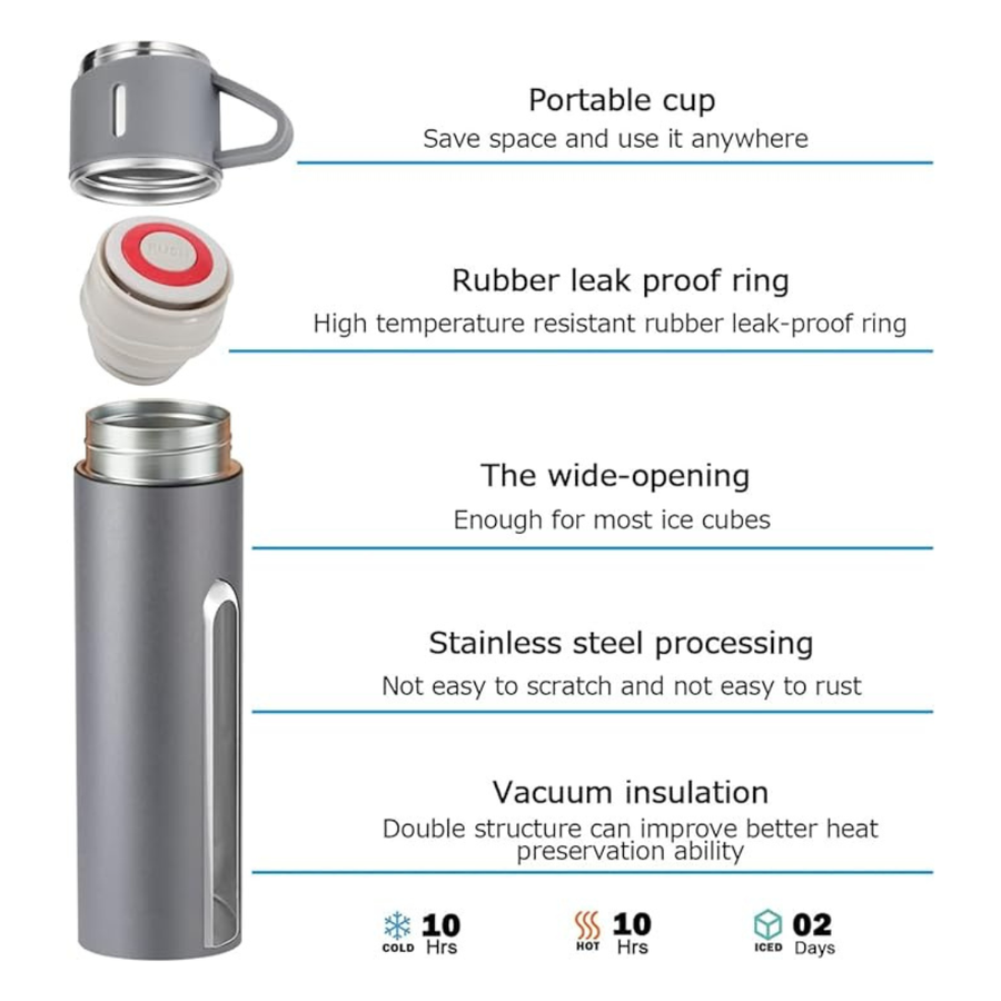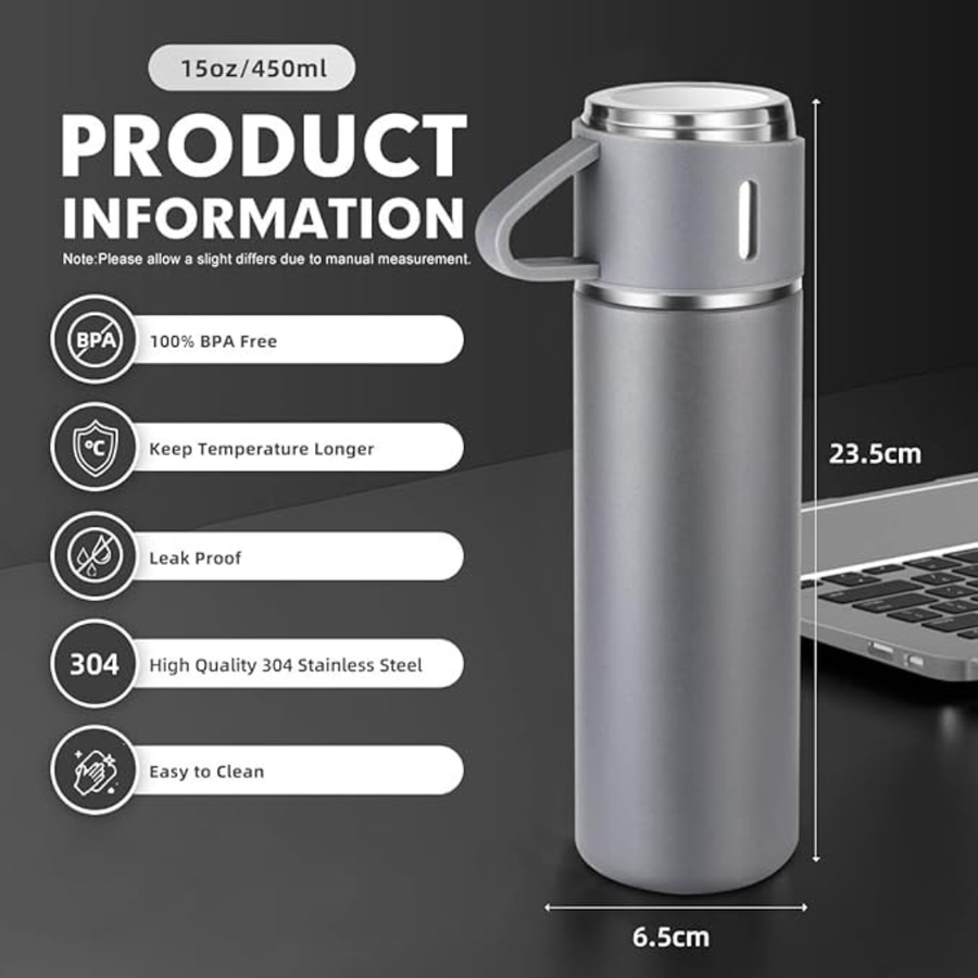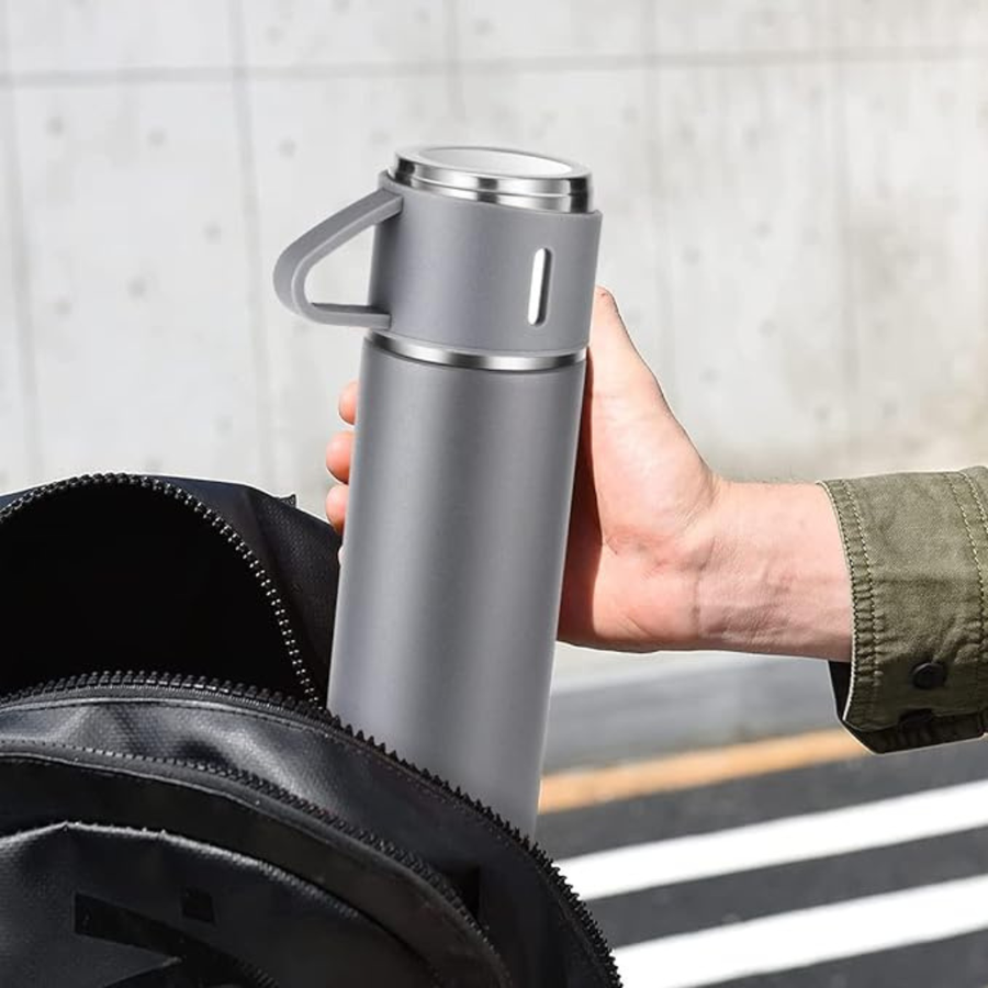 ترمس ب 3 اكواب- 500مللي- (رمادي)