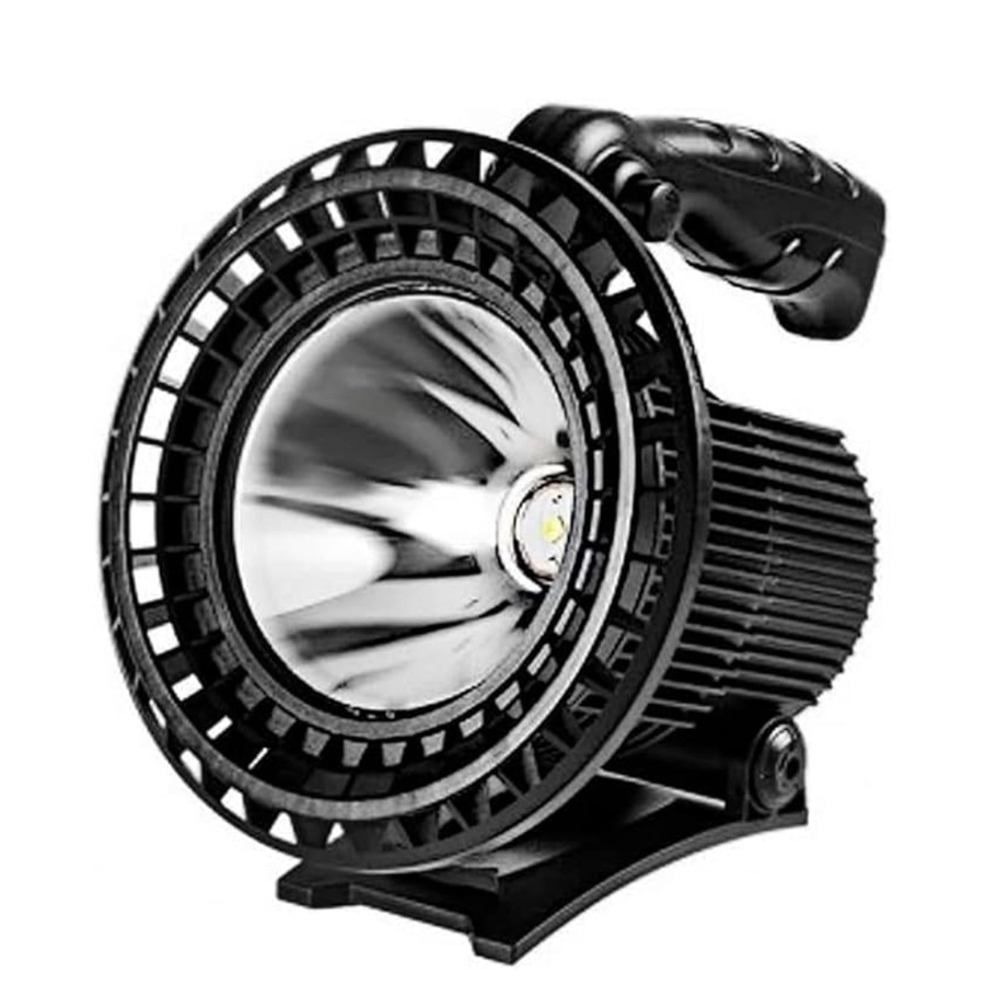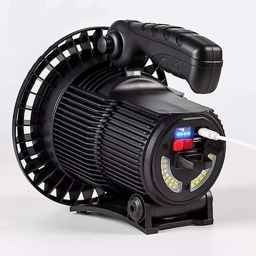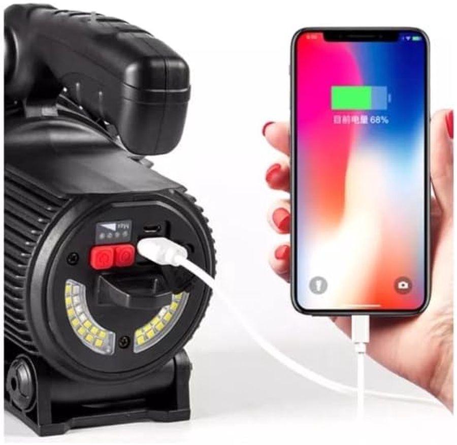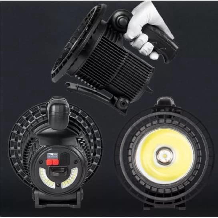 Super Long Lasting Stunning Light,Bright White Day Light ABS Material 30W Battery : Built-in 3*18650 Battery (4500mAh) Light Modes: Headlight (High/Low/Strob) Backlight (High/Low/Red + Blue Flash Light Front Lens Diameter: 17cm Flashlight Length: 17cm Weight : 500g Operating time: 6 hours Continuous Charging way: Micro-usb with power external charging function