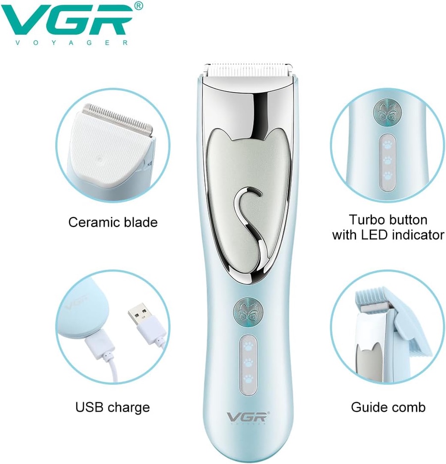 VGR V-203 Professional Dog Clipper, 2-Speed, Low-Noise, High-Power, for Small and Large Dogs, Cats, and Pets with Thick and Heavy Coats, IPX7 Waterproof