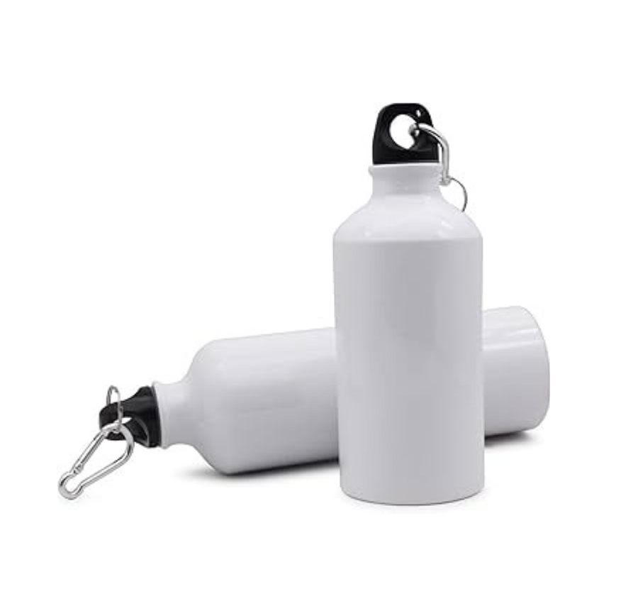 زجاجة بيضاء للطباعة بالتسامي مزودة بحلقة تعليق من الالومنيوم